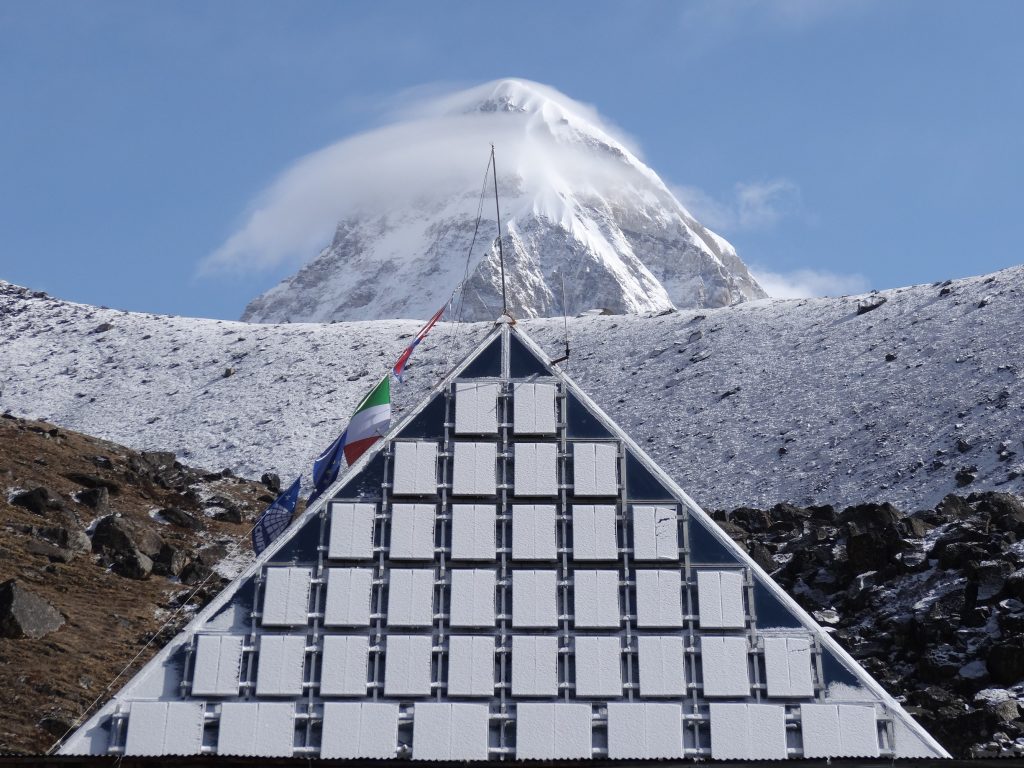 Il laboratorio Piramide ai piedi dell’Everest. Foto di Gabriele Confortola, Maggio 2014.